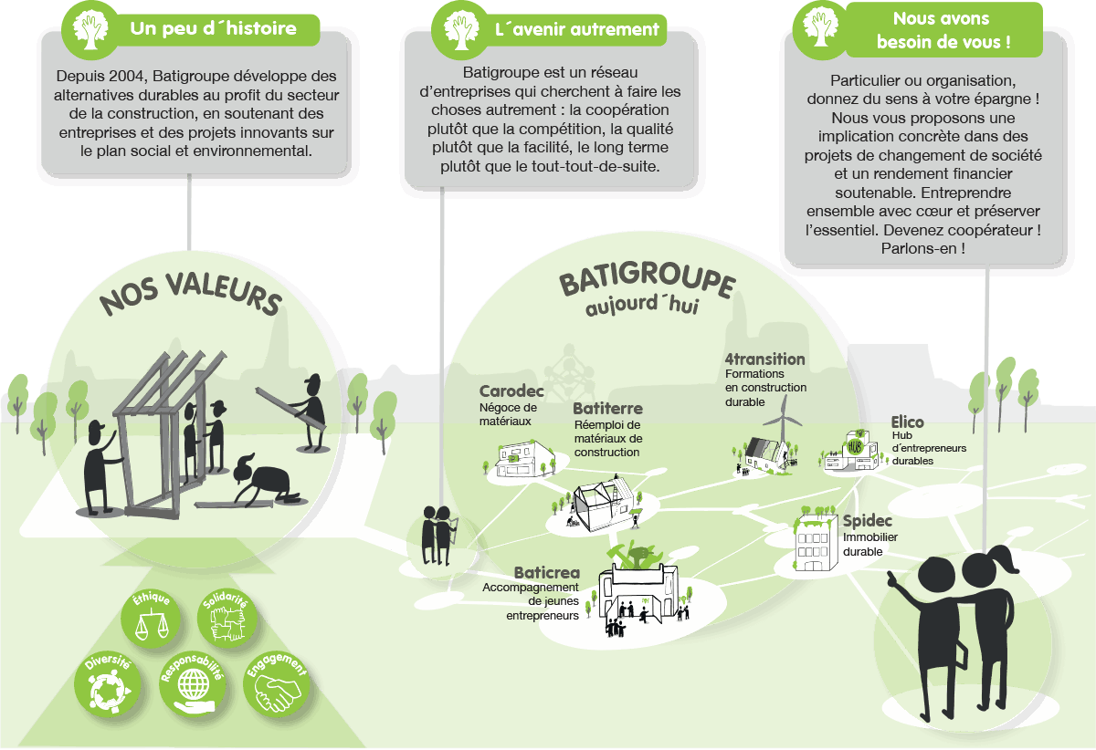 Carodec fait partie de la coopérative Batigroupe, qui développe depuis 2004, des alternatives durables au profit du secteur de la construction, en soutenant des entreprises et des projets innovants sur le plan social et environnemental.